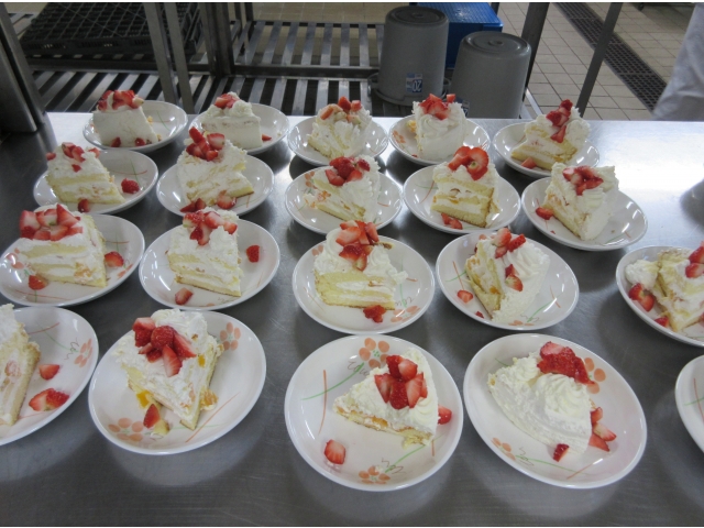 12月25日、クリスマスメニューとして「キャロットピラフ、フライドチキン、コーンスープ、カプレーゼサラダ、クリスマスケーキ」を召し上がって頂きました。利用者様から、「美味しい」の声と笑顔を頂き、素敵なクリスマスになりました。