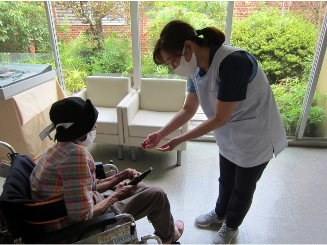 グリーンカーテンのきゅうりと玄関先のミニトマトがすくすく成長し、収穫できるようになりました! 『いきものがかり』の活動の合間に収穫のお手伝いをしてもらいました。