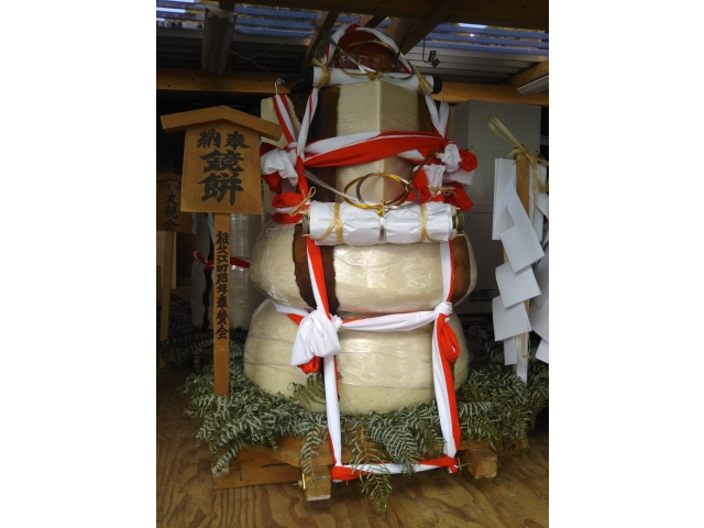 パレード翌日は、祝日だったので、お祭り女職員Mが古い「なおい布」の返納のため神社へ行くと…。ちょうど大鏡餅の奉納場面に出くわし、最前列で見ることができました!貴重な場面を見ることができ大感激!!
