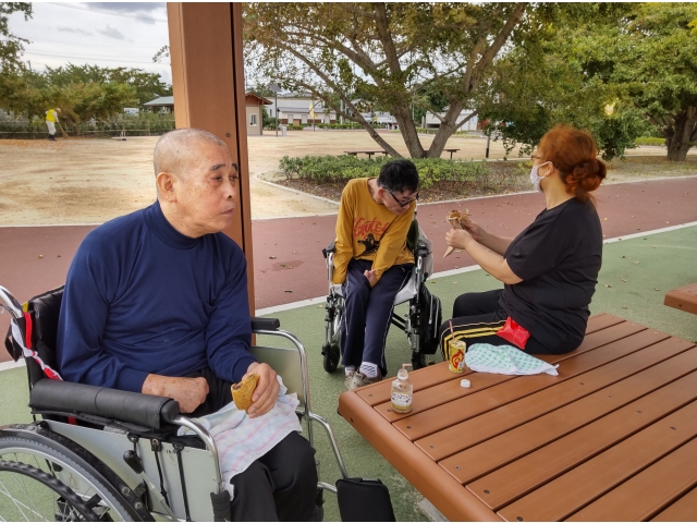その後は、今年6月に開園した祖父江ぎんなんパークへ行き、みなさんお楽しみのおやつタイム!!