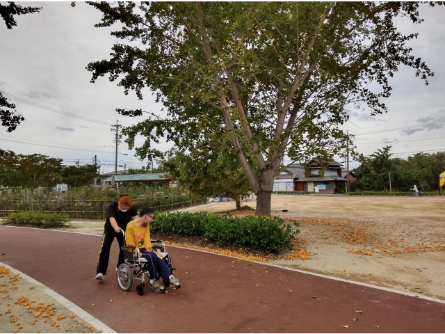 お腹が満たされた後は公園内を散策しました。大粒の銀杏があちらこちらに転がっていて、踏まないように気を付けて移動しました~(*'▽')