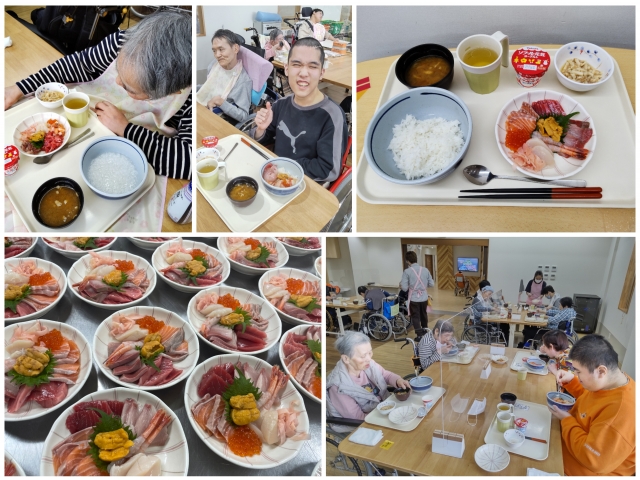 はなのきの利用者さんはお刺身が好きな方が多く、昼食にお刺身やお寿司が提供されるのを楽しみにされています。