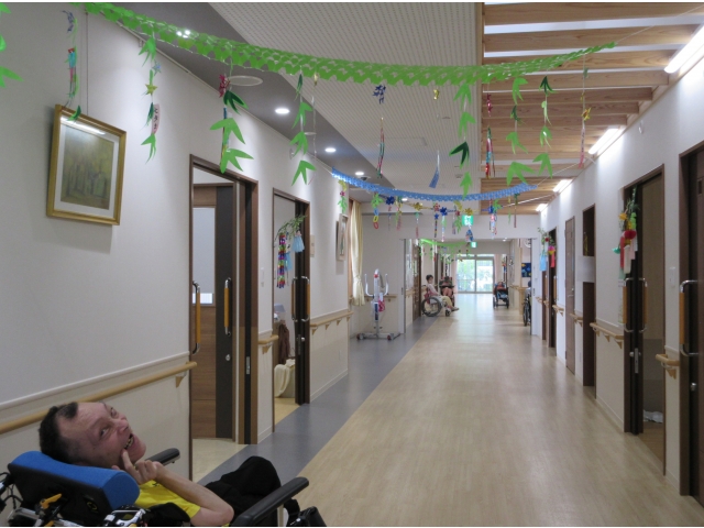それぞれの居室にも笹が飾られています。希望する利用者さんに書いてもらった短冊を見ていると、コロナの収束を願う言葉が並んでいました。この切実な想いが天に届くよう願わずにはいられません。
