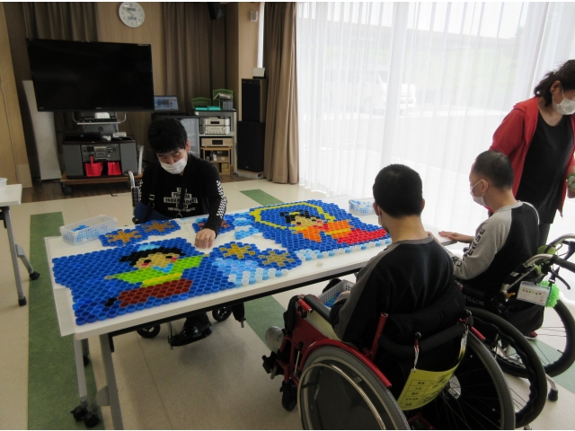はなのきペットボトルキャップアート、今回のテーマは「七夕」