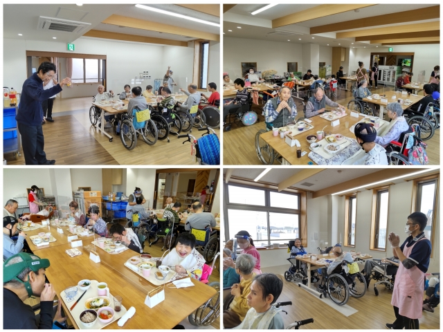 昼食時に誕生会を開催しました。 誕生会の献立は、担当の調理師さんが考えています。 利用者の食卓に腕によりをかけた料理が並びました。 今回の誕生会メニューは… 『赤飯』、『たらのかぶら蒸し』、『含め煮』、『春菊のサラダ』、『マロンケーキ』 おいしい料理に舌鼓を打ちながら、お誕生者をお祝いしました~( *´艸`)