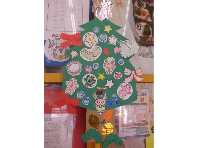 二階プレイルームにも、利用者の皆さんで作ったクリスマスツリーが飾られています。