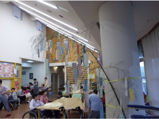 笹を用意して利用者様、職員が願い事を書いて笹に飾り付けました。