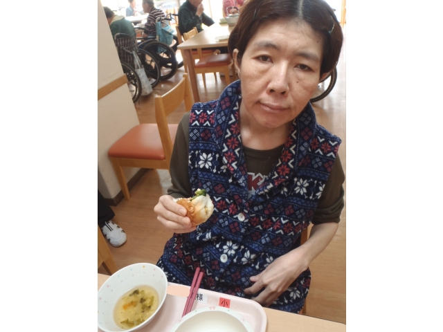 採血で涙を見せていた利用者様も、食堂ではモーニングを食べながら笑顔を見せてくれます。
