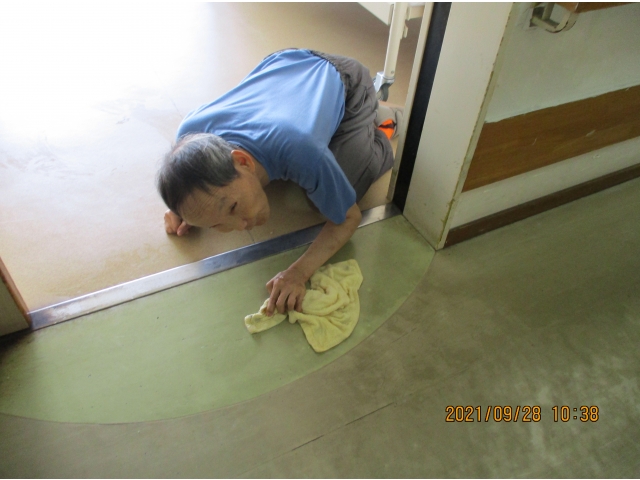 本日は班別活動の作業班でつばき町を掃除しました。皆様、いつも生活しているつばき町に感謝を込めてごしごしと頑張っています。