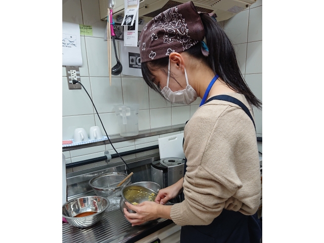 半田の里の畑で収穫したさつまいもを使って、管理栄養士の実習生がおやつ作りをしました。