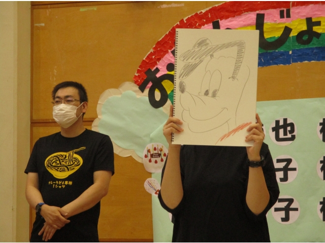今回のレクリエーションは「絵しりとり」をしました。職員が絵を描く間皆様には手を叩きながら1分間数を数えていただき、一体となって楽しむことができました。また絵を見た瞬間は歓声が上がっていました。