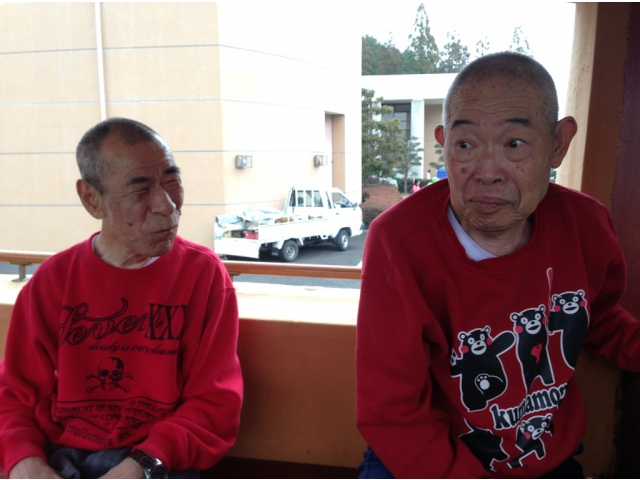 仲良しの利用者様二人はお気に入りの赤いTシャツを着て、写真撮影をしました。