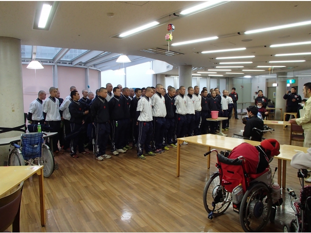 - 25年12月の交流時キャプテンのあいさつ(右から二人目がピッチャーの田中くんです)