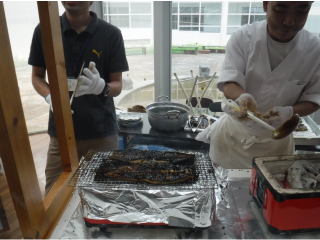 7月28日(木)に希全の里納涼祭が行われ、お昼には七輪で焼いた、焼きたての鰻がふるまわれました。食堂中に漂う鰻の香ばしい香りが食欲をそそり、身はふっくら、皮はサクッとした食感に、おかわり用の鰻もすぐになくなってしまいました。午後からはカラオケ大会が開催され、利用者の皆様、職員も大盛り上がりでした。まだまだ続く暑さも乗り切れそうです!