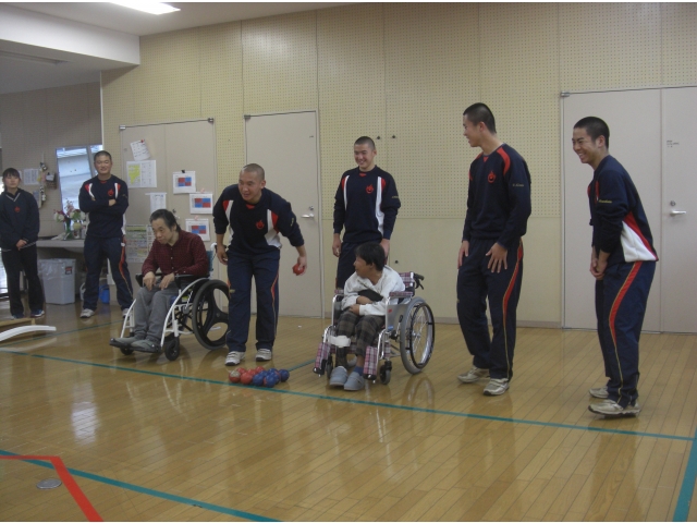 令和元年12月14日(土)に、豊川高校硬式野球部の51名の皆様が清掃奉仕と交流会として、利用者の方とボッチャ競技を一緒に行ってくださいました。