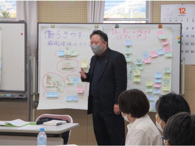 11月に役職者と非役職者がそれぞれに行ったワークショップの報告を行い、グループディスカッションの内容に対して、助言やヒントをいただきました。