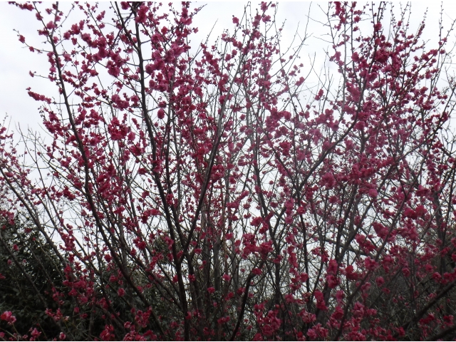 新生寮の門の近くに見事な紅梅が咲いております。梅の香る季節になりました。春が近づいています。