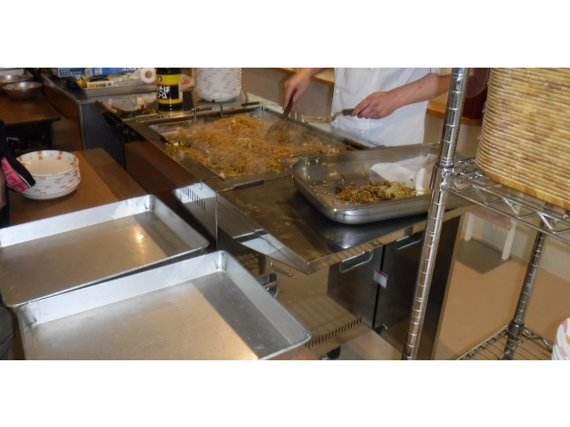 昼食では焼きそばを屋台のように鉄板で利用者様の目の前で焼き、おいしくいただかれました。あいにくの雨でしたが、楽しいひと時でした。