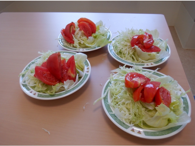 利用者様と職員付き添いで買い出しに行き、材料を購入しました。値段を見ては「高いね。」と話をされました。各々で各野菜を切る係、盛り付ける係、と分担し、焼きそばを作りました。皆さま「美味しい。」と完食されました。