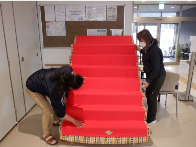 恒例行事の一つ、ひな祭りが3月にあります。行事に先駆けて、お雛さまを飾りました。通りかかったご利用者さまにもお手伝いしていただきました。お雛さまを見ると、自然と笑顔になりますね😊