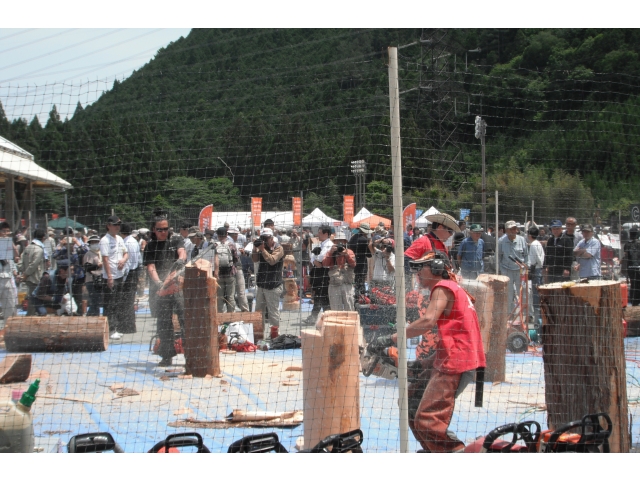 チェーンソーアートの部では、世界各国からチェーンソーを自在に操り、1本の丸太をみるみる芸術作品へと変えてしまう腕自慢達が一同に集まり、その場で実演してくれます。