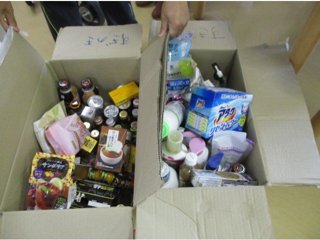 東栄町社会福祉協議会様から、第2弾コンビニの商品を寄贈していただきました。 ダンボール箱2箱に、シャンプー、洗濯洗剤、栄養ドリンク、肝臓にやさしいドリンクなど様々な商品が詰め込まれており まるで宝箱のような贈り物をいただきました。みなさまに喜んでいただけるよう、有効に活用させていただきます。(即日消費)ありがとうございました。