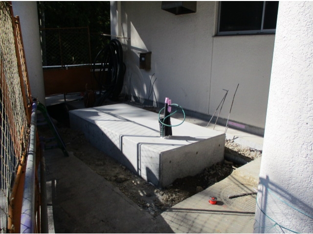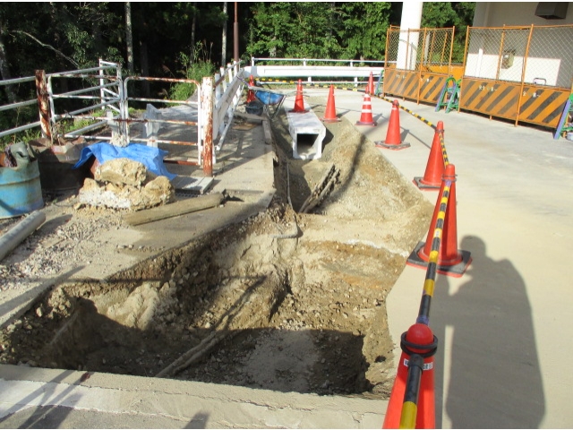 災害により停電となった場合でも、照明を点灯、揚水ポンプ・浄化槽等を稼働させ、利用者さまの支援を継続して行えるように、「非常用自家発電設備」を今年度中に設置します。そのための工事が着々と進んでいます。