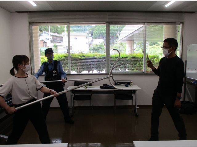 愛知県設楽警察署三輪駐在所のご協力により、施設における防犯対策等の訓練を実施しました。昨今、何が起きるか分かりません。あらゆる状況に対応できるように日々訓練を行っています。