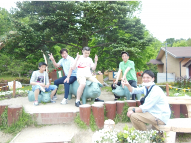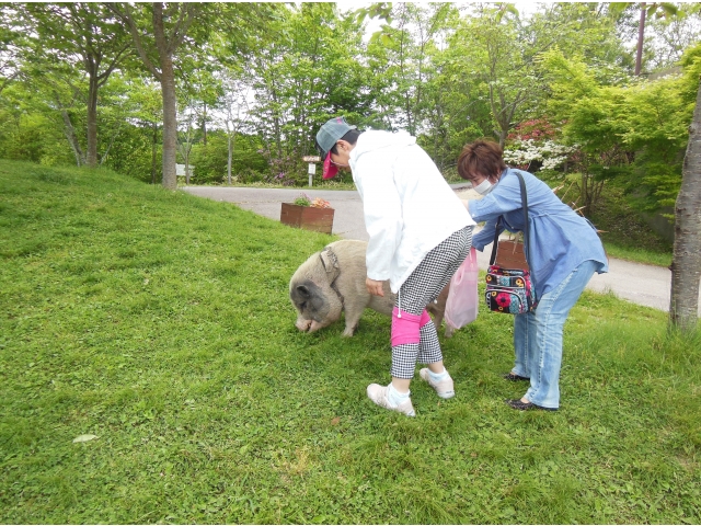 昼食で美味しくとんかつを食べ、その後ブタさんと戯れました。