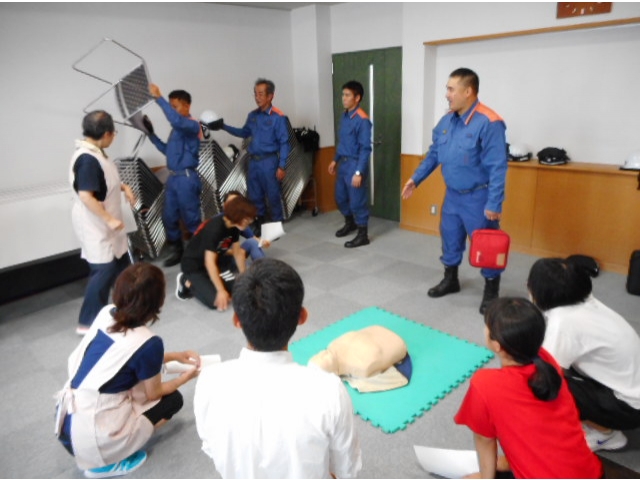 消防隊員の方からは、要救助者発見から、AEDの使用法まで丁寧に教えていただきました。