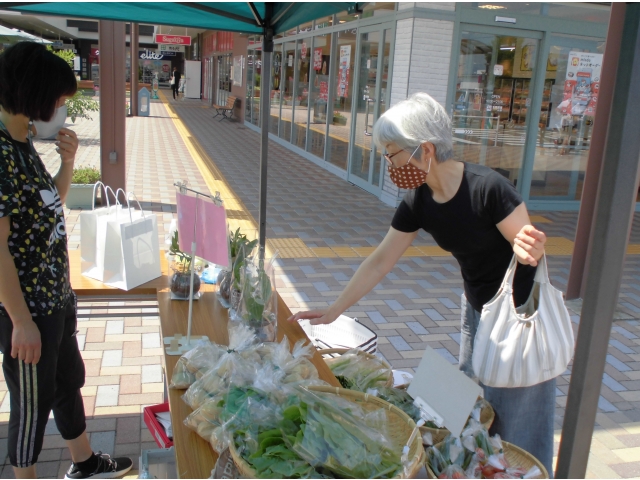 夏野菜(茄子・トマト・ピーマン・ゴーヤ・モロヘイヤ・じゃが芋等)1袋100円で、地域の皆様にご好評のお声を頂戴しながらご購入いただき、ほぼ完売できました。
