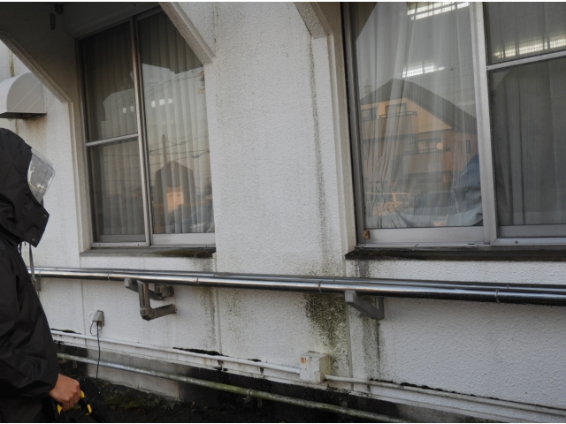 本日は黒ずくめの男が高圧洗浄機で外壁掃除をしました。