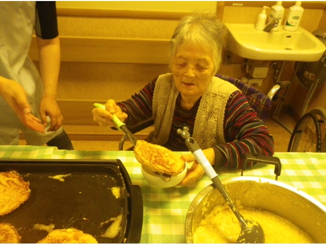 1丁目の利用者様が、茶話会をおこないました!メニューは、あんこ・生クリーム添えのフレンチトーストです!あんこと生クリームは利用者様にお好みの量をのせてもらいました。ホットプレートで焼いたフレンチトーストの甘い匂いが、小牧苑内に広がっていました!!昼食をたくさん食べた後でしたが、皆さんおいしくいただきました。