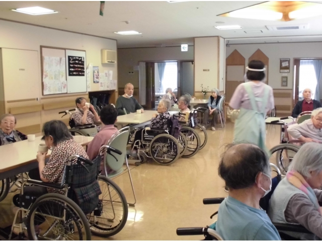 6月23日、フロアごとで喫茶を行いました。今回のメニューは、ミルクたっぷりコーヒーといちごクレープでした。嚥下に配慮されたソフトクレープで、ミキサー食やソフト食の方も含め、美味しく安全に召し上がっていただくことができました。