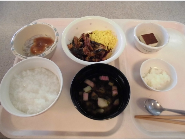 本日のメニューは、鰻の蒲焼き、里芋のゆずみそかけ、べったら漬け、すまし汁、ケーキ(ブルーベリーケーキorティラミスケーキ)でした。