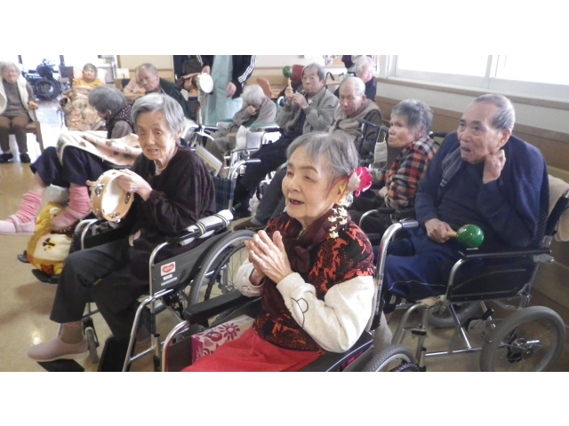 2月23日、2丁目ではお茶会&カラオケ大会を行いました。チョコレートプリンをアイスクリームと生クリーム、チョコスプレーでパフェにして提供しました。カラオケ大会では、衣装を着替えて大熱唱!いつもと違う雰囲気で楽しみ気分転換を図っていただきました(*^-^*)
