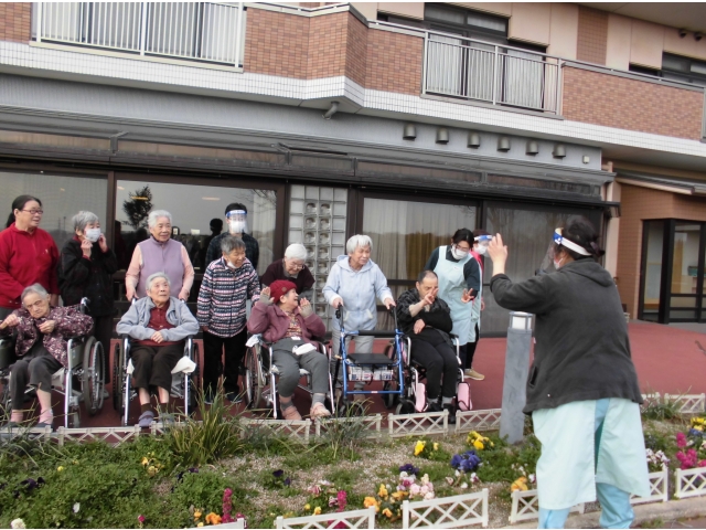 花壇の花を見たり、1階食堂に飾ってある雛人形を見て楽しむことができました。