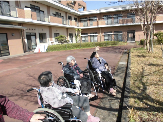 天気も良くぽかぽか陽気だったので、喫茶の後は中庭で散歩をしました。
