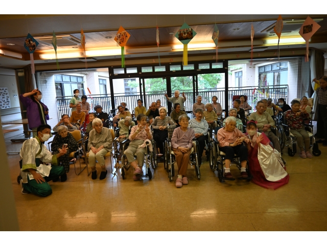 3丁目にも織姫と彦星がやってきました。 短冊の発表をした後、たなばたさまを歌いました。