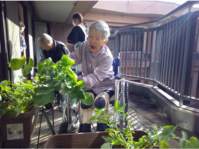 ベランダはぽかぽか陽気で皆さん楽しく収穫することができました。