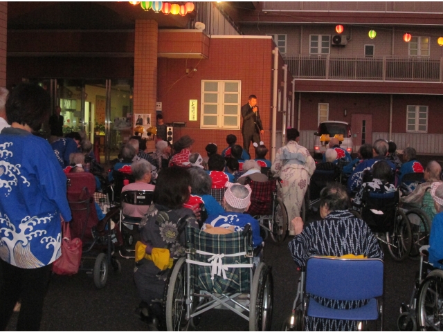 地元の歌手・隈部文士さんによるステージでは、その美声に入居者の皆様も大変盛り上がっていました。