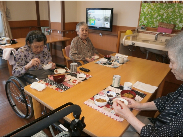 このお三方は、食事も残す事がほとんどない方ばかり。この調子でずっとお元気で過ごしていただきたいです。