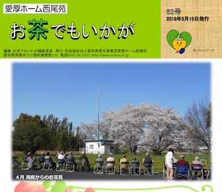 愛厚ホーム西尾苑では、機関紙『お茶でもいかが』を年2回発行しています。(注)PDFファイルを開くには、Adobe社のAdobe Readerが必要です。お持ちでない方は、こちらをクリックし、画面の手順に従ってダウンロードしてください。(無料)