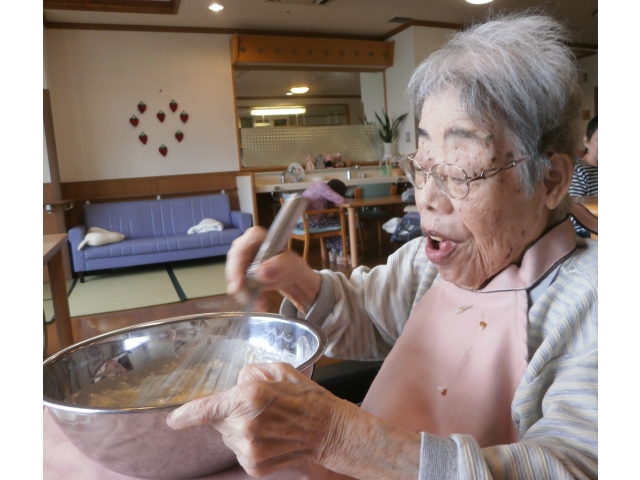 7月の終わりの二日間を使って入居者様と介護職員でおやつ作りをしました。