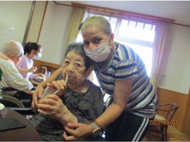 「第1弾の『ベジ甘酒』も入居者様から“美味しかった”って聞いたけど、飲んでみたかったな。今日の『ベジカルピス』味見してみたい。」