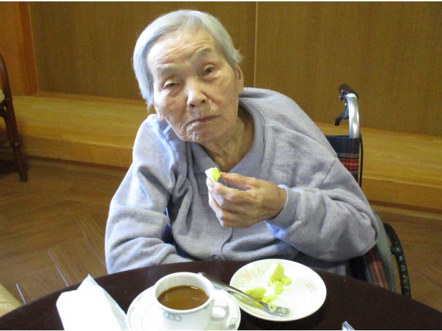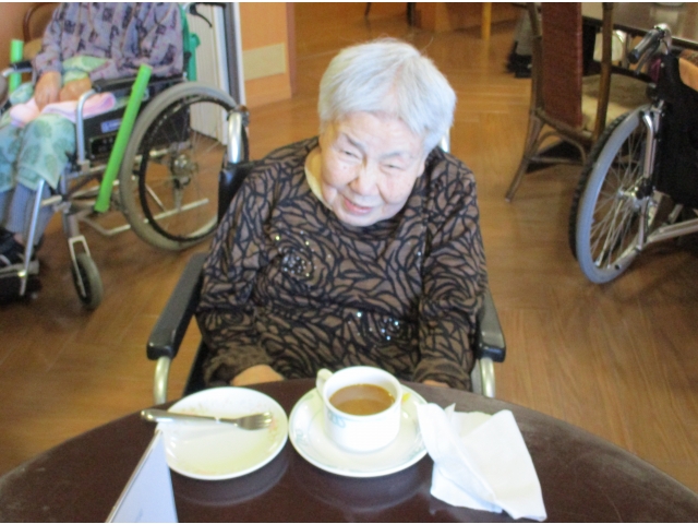 利用者様の元へ運ばれた“ジャック・オー・ランタンのさつまいも🍠茶巾×ホットコーヒー☕”は、「おばけ~🎃👻」と怖がられることなく、「懐かしい味」と大好評でした。