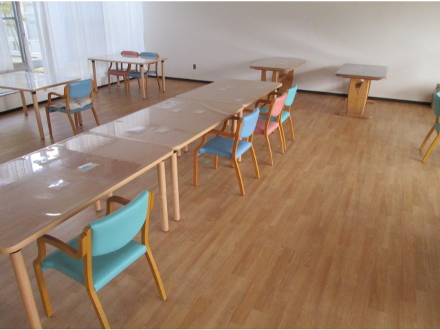 みなさんが集まって楽しく食事するのはもちろん、食堂は行事の会場としても利用しています。ロビーは利用者の憩いの場となっており、レクリエーションなども行います。歩行が困難な方でも安心して入浴できるよう、特殊浴槽も用意しています。