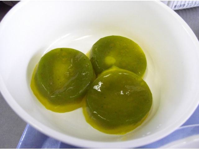 うどんは試行錯誤の結果作り上げられた絶妙な硬さのソフト食を、ところ天つきで仕上げました。南瓜サラダは2層することで南瓜らしくなるように工夫しています。