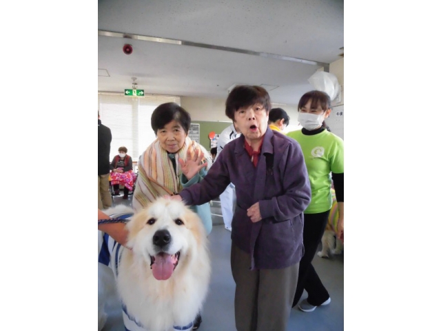会場となった西棟ロビーには大勢の利用者の方が来られ、みなさん素敵な笑顔でわんちゃんとふれあっていました。
