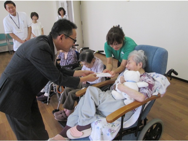 9/6(金)、大府市高齢障がい支援課長様が来苑され、敬老金の贈呈が行われました。